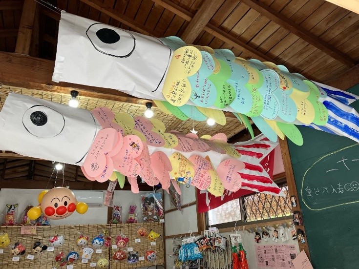 店内は、沢山の方のハートフルチケット入れで店主様が作成された鯉のぼりが店内を泳いでいました!