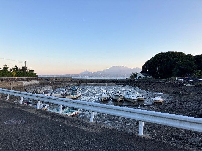 目の前には有明海が広がり、その先に雲仙普賢岳が見えてのどかな所です。