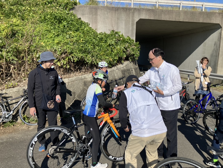 レース終了時に選手の皆様へお水の配布やレース中の応援にも参加させていただきました。
